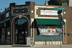 That furious but defiant old-timer, it transpired, was Greg Ketter, founder and proprietor of the Minneapolis independent bookstore DreamHaven Books and Comics.  The renowned sci-fi and fantasy writer Harlan Ellison once described DreamHaven as “a book-seeker’s cave of miracles”.