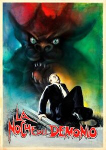 Another all-time classic horror short story is M.R. James’ Casting the Runes (1911), which taps into the fear there’s something monstrous and nasty following you, and following you, and all the time getting closer… The story was filmed as Night of the Demon in 1957, 21 years after James’ death. I think James would have approved of the creepy atmosphere and build-up created by director Jacques Tourneur, but not of big, shonky-looking demon that’s doing the following and appears at the movie’s climax. Apparently, it was shoehorned into the film by its producers, against Tourneur’s wishes. Still, I really like this colourful poster for the movie, painted by Spanish artist Enrique Mataix. Mataix produced movie posters for almost a half-century, from 1939 to 1988, including ones for Bringing Up Baby (1938), Waterloo Bridge (1940), The Glenn Miller Story (1954), Lust for Life (1956), North by Northwest (1959) and Anatomy of a Murder (1959). Yes, his Night of the Demon poster gives prominence to that silly demon, but it’s slightly blurred, which hides its shonkiness. And the surrounding, infernally psychedelic colours are striking.