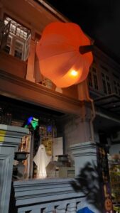 It’s October 31st, the day of the spooky festival known in Ireland as Samhain and elsewhere as Halloween. As is my custom each Halloween, I’ll celebrate the spirit of the occasion by posting on this blog ten of the creepiest or most unsettling pieces of artwork I’ve come across during the year. By the way, the above photos are of a house in my immediate neighbourhood in Singapore. Its inhabitants must really love Halloween.