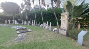 As the dusk gathered, the elaborately sculpted headstones and stone statues gave the location an atmospheric vibe. Supposedly, their arrival here inspired some creepy stories about taxi drivers picking up folk outside the church late at night, being asked to drive the passengers to certain disused cemeteries around Singapore… and, when they got to their destinations, discovering that those passengers had mysteriously vanished from the back of their cabs. Though such tales obviously riff on the old urban myth of the ‘vanishing hitchhiker’. Incidentally, it was nice that the church’s supervisor joined us at this point and answered our questions about the building and its history.