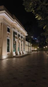 From there, we went around another corner into Canning Rise and ascended past Singapore’s Masonic Hall – Freemasonry was brought here by the British – and then the National Archives building, which was previously the site of Singapore’s prestigious Anglo-Chinese School. At both places, we stopped and heard more tales. We heard the first mention of conspiracies. What had the Freemasons been up to in the the 19th century? And, though their original number contained such prestigious figures as Stamford Raffles, founder of contemporary Singapore, and William Napier, its first lawyer, why wasn’t the architect who did so much to fashion the early city, George Drumgoole Coleman, invited to join them? We’d hear more speculation about that later. Then we entered the park itself – through the Spice Garden, to the edge of Fort Canning Green, and up to Cox Terrace behind the majestically floodlit Fort Canning Centre. By now it was fully night-time.